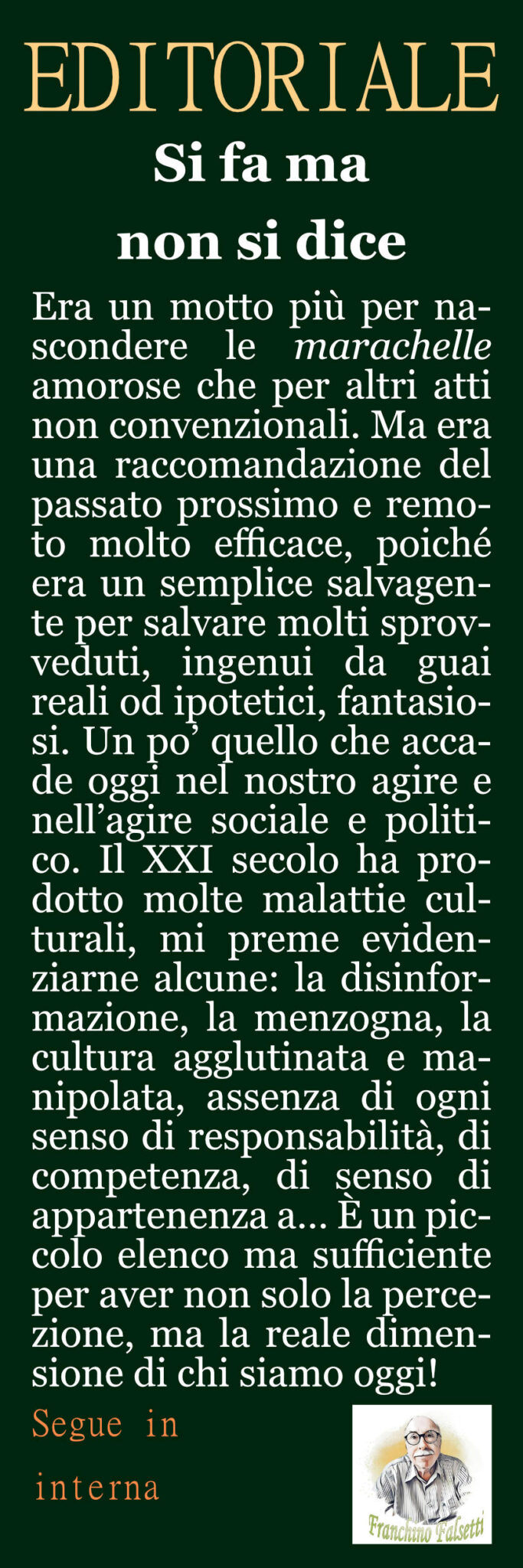 L’Editoriale di Franchino Falsetti. “Si fa ma non si dice”