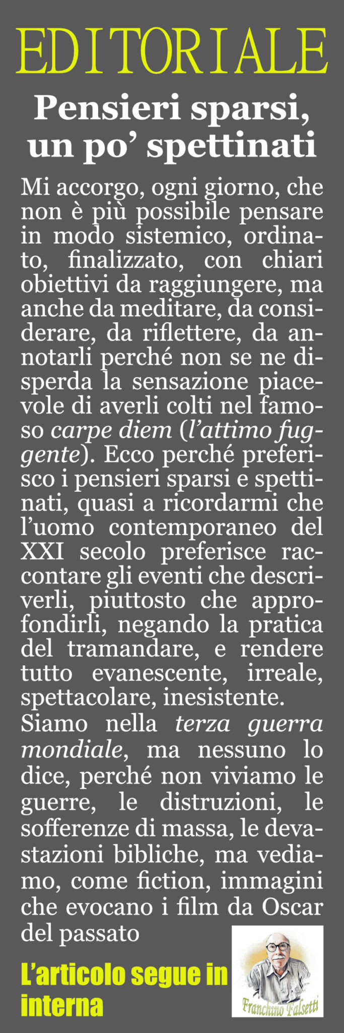 “È difficile percepire che stiamo vivendo un tempo di nuovi cascami del passato”