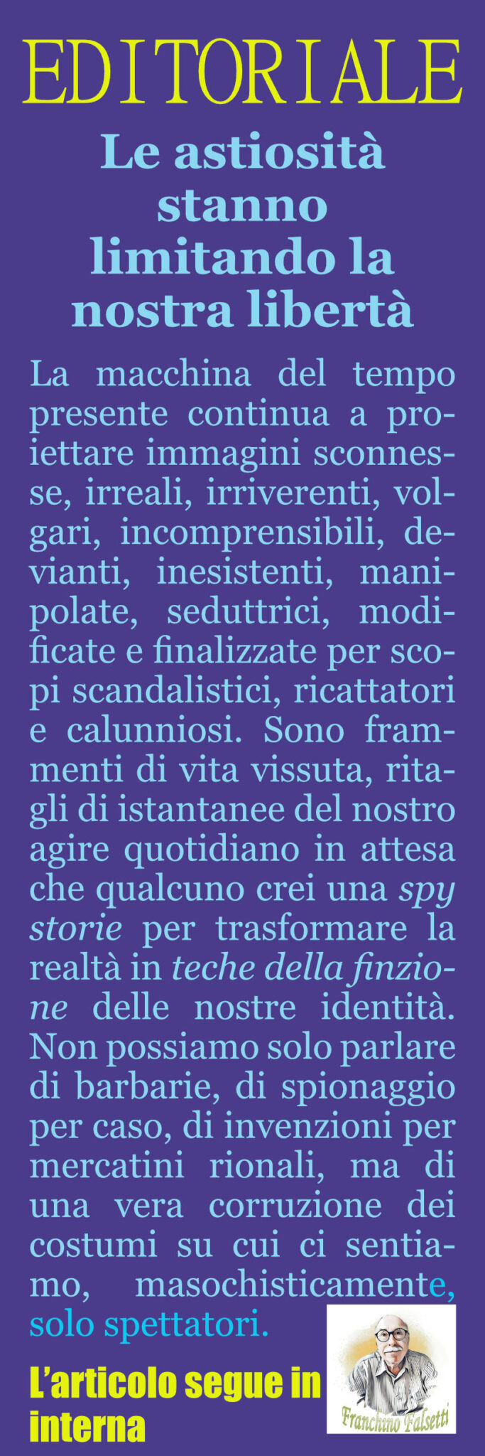 “Oggi si potrebbe dire chi comanda in Italia, ma non si può perché prevale la prevaricazione”