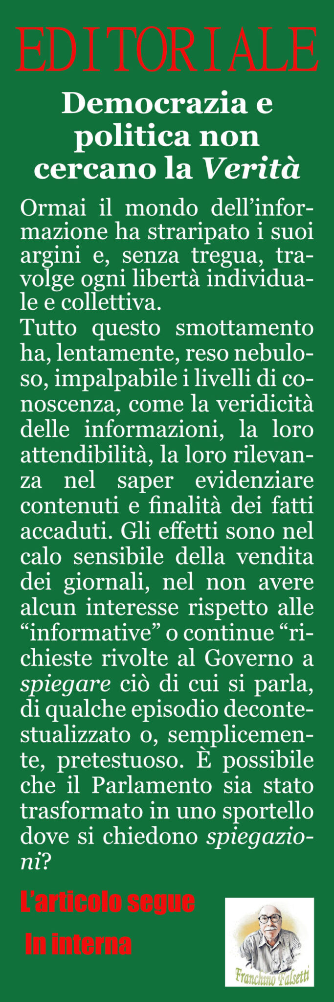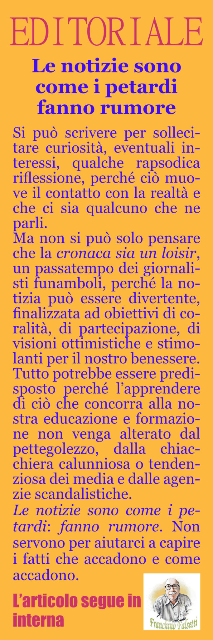 L’Editoriale Millecolline di Franchino Falsetti. Le notizie sono come i petardi fanno rumore