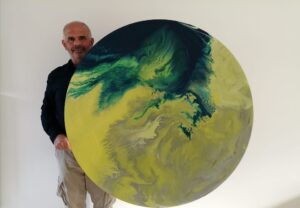 Leonardo Savini 1960, artista che vive e lavora a Bazzano di Valsamoggia in provincia di Bologna. Ha seguito un percorso formativo del tutto autonomo e personale non accademico ma libero ed istintivo fatto di visite a musei gallerie pinacoteche. Biker Dacariano ha partecipato a ben tre Parigi Dakar. Innamorato del deserto della natura e dei grandi spazi è riuscito a portare nella sua espressione pittorica quel profondo è sentito desiderio di vita e libertà che è parte integrante della sua esistenza. Leonardo Savini ha un rapporto straordinario è davvero speciale con il colore. Lo plasma, lo scalda, lo mischia e quindi lo lascia liberamente fluire sulle sue grandi tele tonde, ne segue il percorso le traiettorie, fino al raggiungimento dell’obiettivo stabilito (dripping). suggestive le sue opere. Tondi di grandi dimensioni ispirati a mondi immaginari, al mare alla sua infinita bellezza oggi così fortemente compromessa dall’inquinamento ambientale, sentita e accorata riflessione su una delle più urgenti problematiche dei nostri giorni.