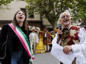 Il termine della sfilata, che si svolge sulla via principale del paese, è caratterizzato dalla sosta di fronte ad ogni nuova opera, presentata daUmberto Pampolini, a cui viene fatto seguito il taglio del nastro a cura Chiara Ronchetti, Assessore Comunale in rappresentanza del Comune di Vergato.