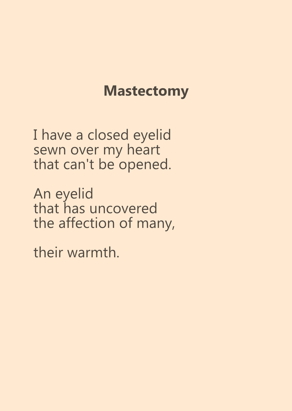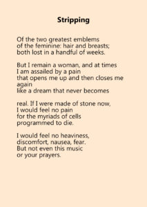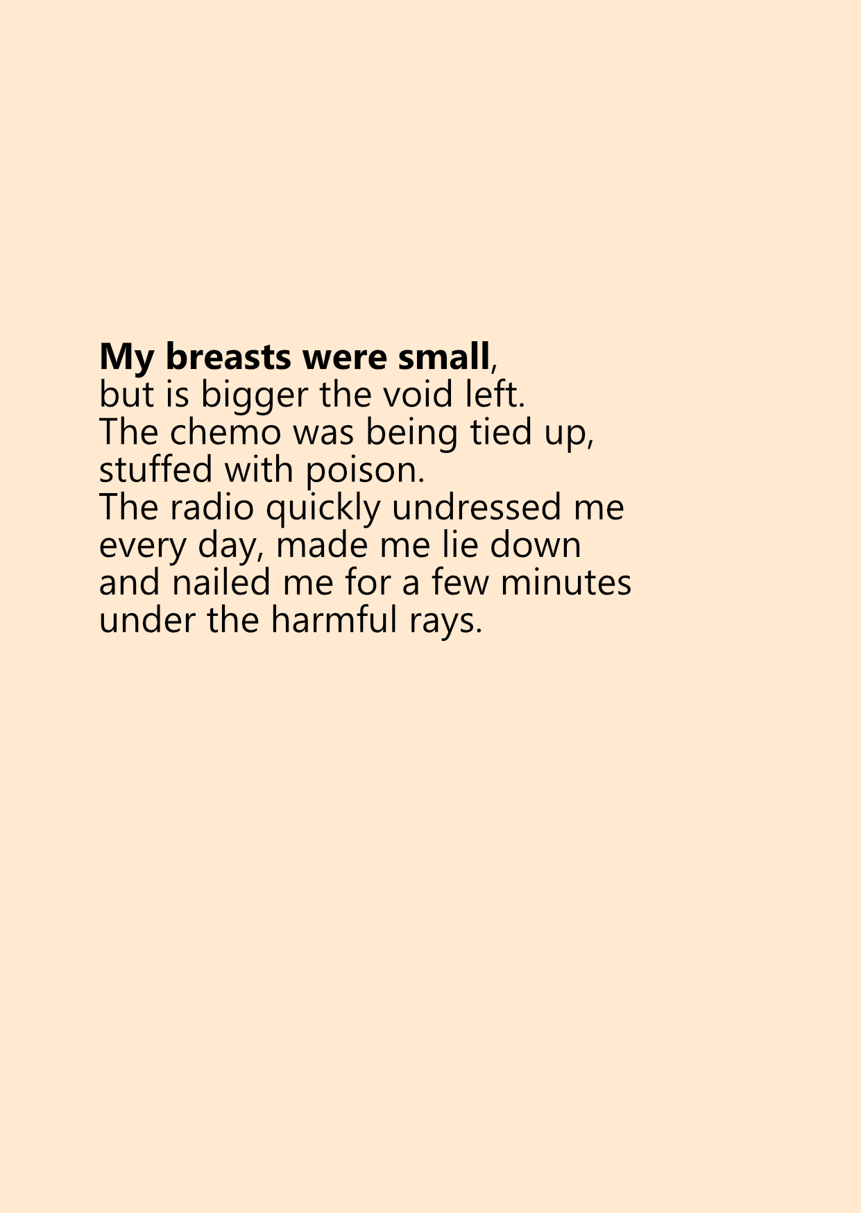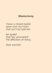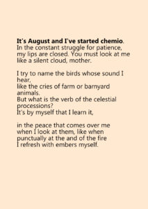 In questo libro compaiono due di quelle che oggi chiamo oncopoems, testi legati al cancro, alle sensazioni ed emozioni che suscitava in me.