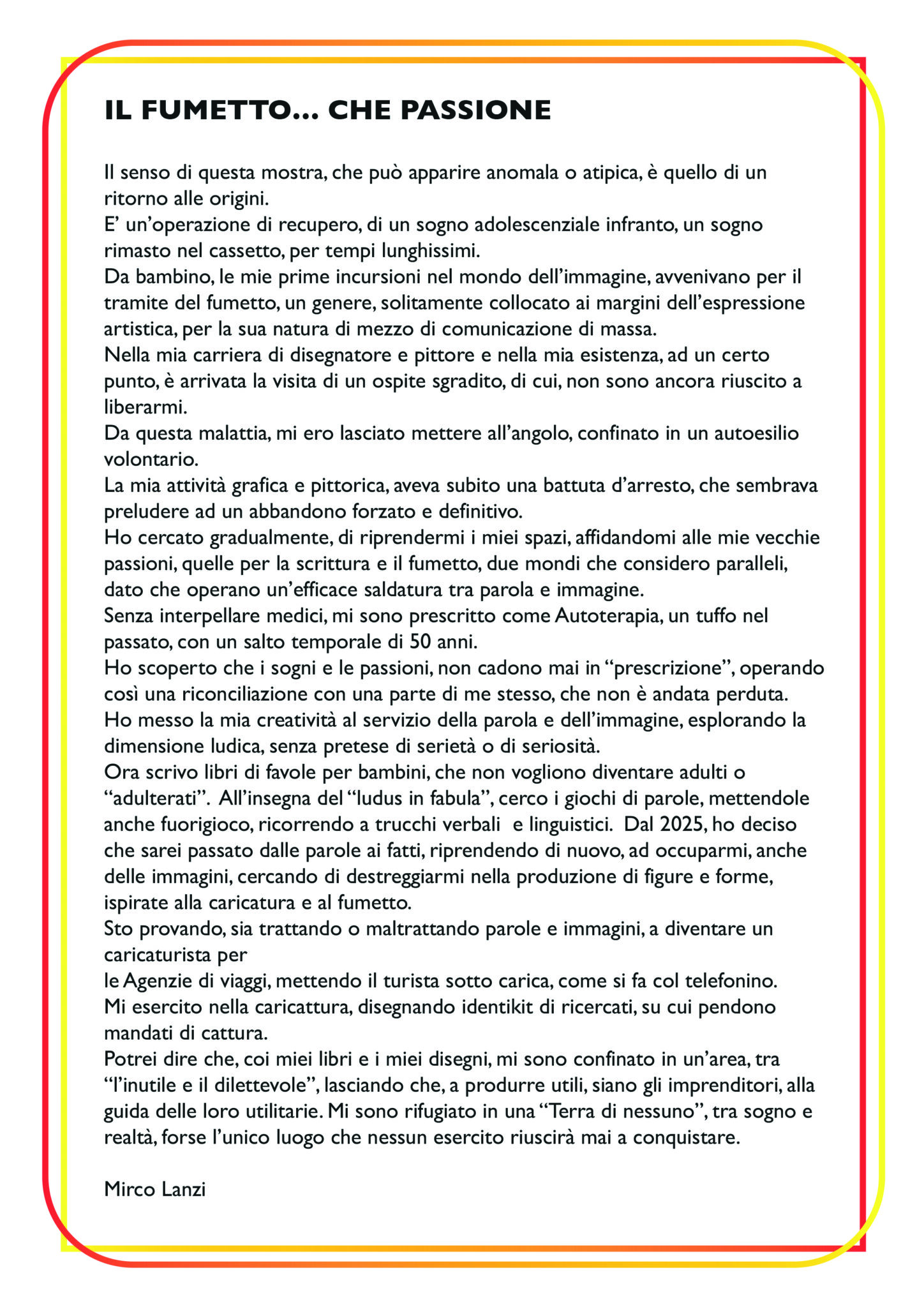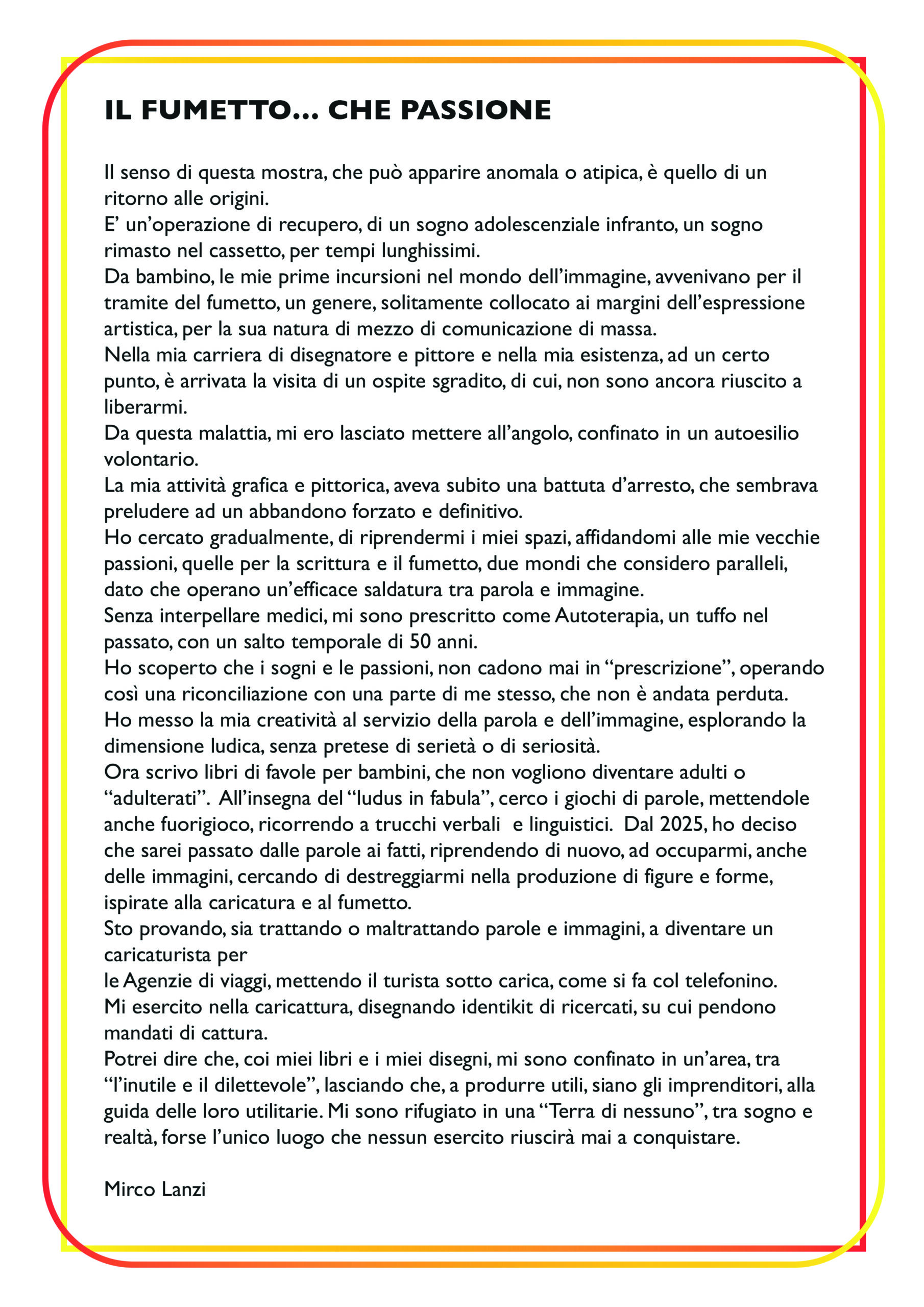 Una nostra lettrice, anche artista scultrice, Albertina Lodi, ci segnala una mostra invitandoci ad andare a visitare: “Il fumetto… che passione” di Mirco Lanzi.