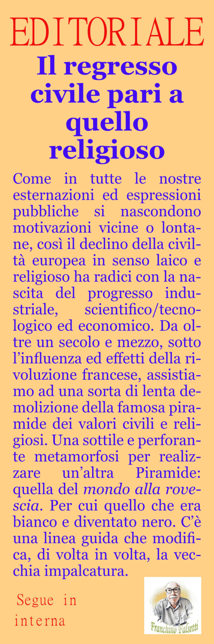 EDITORIALE Millecolline. Il regresso civile pari a quello religioso