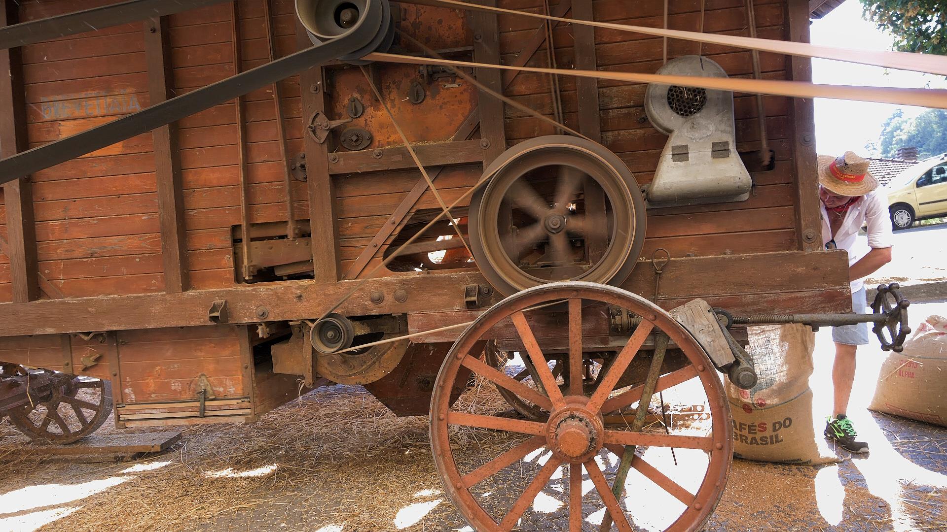 Una vecchia signora è tornata al lavoro grazie ad un gruppo di amici di Loiano (Bo) che l’hanno rimessa in funzione: la trebbiatrice